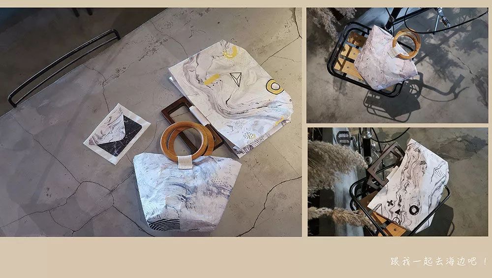 設計主要從編織袋材料質感印制到Tyvek? 材料上的沖突感和矛盾感入手,著重表現了編織袋的紋理與光澤,并從編織造成的格子肌理出發,創造像素風的圖樣。圖樣主要以輕松愉快與些許懷舊感為主。