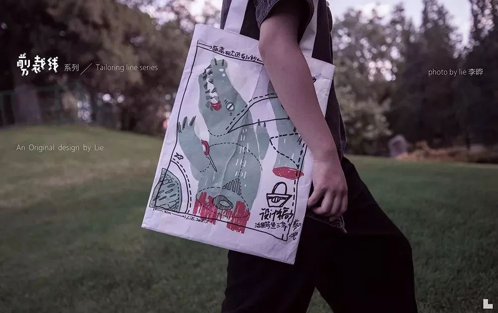 《剪裁線》系列是一次為動物保護的發聲。除了手繪圖案外,兼具布料韌性、皮膚透氣性和紙質印刷力的Tyvek? 面料本身,便是代替動物皮毛的好選擇。